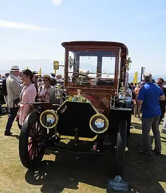 From 1909, the Speedwell's base price was $2,500, equivalent to $84,366 in 2024. Advertising stated "It would be folly to pay more," and “It would be unwise to pay less."[5][6] The Speedwell was a well built car with a dedication to detail. Speedwell was among the earliest companies to market a torpedo and the only one to use concealed door hinges and place the horn under the hood. The one-chassis policy did not prevent the company from offering Speedwells in several body styles, including some evocatively called Cruiser, Duck Boat and Speed Car.[5][7]