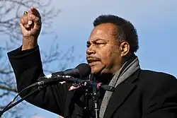 Coggs speaking during the protest outside of the Wisconsin State Capitol on March 12, 2011 during the 2011 Wisconsin protests