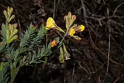 Sphaerolobium nudiflorum is a species of flowering plant in the family Fabaceae and is endemic to the south-west of Western Australia. It is a shrub that typically grows to a height of 15–60 cm (5.9–23.6 in) and has yellow or orange flowers from October to January.[2] It was first formally described in 1844 by Carl Meissner who gave it the name Roea nudiflora in Lehmann's Plantae Preissianae.[3][4] In 1864, George Bentham changed the name to Sphaerolobium nudiflorum in Flora Australiensis[5] The specific epithet (nudiflorum) means "bare-flowered".[6]