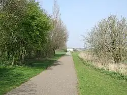 Spike Island is an artificial island created in 1833 when the Sankey Canal was extended from Fiddler's Ferry power station to the River Mersey at Widnes. The extension separated a section of Widnes previously called Woodend from the remainder of the town.[1] The canal passes from the West Bank Locks on Spike Island to Warrington and then into St. Helens town centre. The canal fell into disuse and closed in 1963. The canal footpath now forms part of the Trans Pennine Trail.