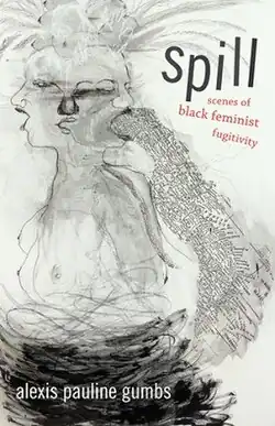 Spill: Scenes of Black Feminist Fugitivity is a 2017 book of prose and poetry by Alexis Pauline Gumbs.[1] It is a labor of love, and an experimental and poetic work of literary criticism based on the work of Hortense Spillers and the literary archive of freedom-seeking black women.[2] Containing the first syllable of Spillers’ last name, it is an ode to Hortense, the individual, as much as it nurtures–and is nurtured by–black femme folk across vast spatiotemporal locations. The subtitle, "Scenes of Black Feminist Fugitivity" nods to Saidiya Hartman’s Scenes of Subjection: Terror, Slavery, and Self-making in Nineteenth Century America.[3] The work pays homage to not just Saidiya, and not just Hortense, in fact not any singular "I" understood within a Cartesian "Cogito ergo sum" that would subordinate the collective to the individual. "When I turned these phrases, doors opened and everyone came through," Gumbs writes of her engagement with Spillers’ work, "all the black women writers Spillers wrote about and didn’t write about. All the characters those black women writers acknowledged and ignored."[1] Gumbs converses with black study and black womanhood: past, present, and future.