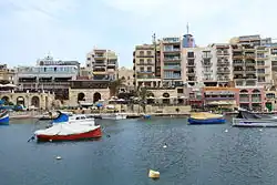 The palace stands on a hill with extensive views that were diminished over the years.[64] It originally overlooked and gave its name to Spinola Bay. In the 20th century, the area surrounding the palace began to be built up, and today the palace is barely visible from the bay, being obscured by apartments and other modern buildings.[31][65] Spinola Bay, formerly St. Julian's Bay, is now reputed for its number of prime restaurants and fine dining.[66]