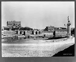 In 1860, the palace was leased to the British military for £20 a year.[11] It was modified and converted into a military hospital, and was inaugurated as the Forrest Hospital in October of that year.[12] It was also sometimes known as Forrest House,[13] and was named for Dr. John Forrest who was the Inspector for Hospitals of the period.[14][15] It served generally, but not exclusively, for soldiers suffering forms of venereal diseases and hosted at least twenty patients at a time.[16] On a normal basis it could serve for 42-bedded patients,[17][3] divided into nine wards at different floors,[18] but during crisis it had served up to 186 patients at a time.[19] Following the cholera epidemic of 1865, when three patients there died, a sanitary report asserted that the building, being a non-purposely built and antique residence, was not suitable as a hospital.[20] Since its inauguration as a hospital until at least the end of the 19th century, the building had serious issues related to a bad drainage system and ventilation.[21] By 1900 the accommodation at the hospital grew with the use of tents at its gardens.[22] Improvements were carried out, and were ready by 1906, on the sewage system.[23] The palace was still in use as a hospital in World War I.[24] The building saw its end as a hospital in August[25] 1922.[26][27] This became only possible with a military hospital opening in Mtarfa.[28]