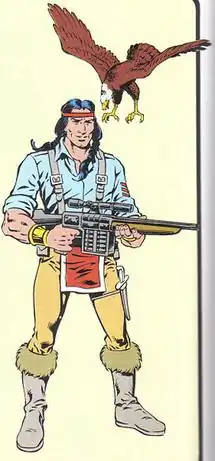 ![]() Illustration of Spirit and his bald eagle sidekick Freedom from G.I. Joe: Order of Battle. Art by Herb Trimpe. | |