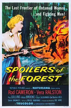 Spoilers of the Forest is a 1957 American drama film directed by Joseph Kane, written by Bruce Manning, and starring Rod Cameron, Vera Ralston, Ray Collins, Hillary Brooke, Edgar Buchanan and Carl Benton Reid. It was released on April 5, 1957 by Republic Pictures.[1][2][3]