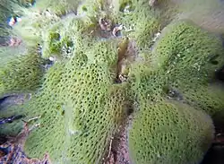 Spongilla lacustris is a demosponge with a broad distribution ranging from North America to Eurasia. It is the most common freshwater sponge in Central Europe,[2] is the most widespread sponge in Northern Britain, and is one of the most common species of sponges in lakes and canals.[3] It has the ability to reproduce both sexually and asexually. They become dormant during winter. The growth form ranges from encrusting, to digitate, to branched, depending upon the quality of the habitat.[4]