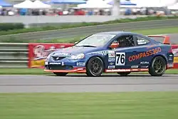 Sport Touring (ST), also known as Street Tuner, is a former set of regulations for production-based race cars, originally by the SCCA, and later by Grand-Am and IMSA, for the Canadian Motorola Cup[1] (later known as the Grand-Am Cup, KONI Sports Car Challenge/Challenge Series, and finally the Michelin Pilot Challenge), between 1997 and 2018. Class rules dictated these cars have smaller displacement engines, with 4, 5 or 6 cylinders, typically producing around 170 hp (130 kW) to 240 hp (180 kW), typically consisting of smaller sedans, hatchbacks, coupes, and convertibles. Examples of cars competing in this class included the Acura RSX, Acura TSX, Chevrolet Cobalt, Lexus IS300, Mazda RX-8, BMW Z3, BMW 330i, Acura Integra Type R Mini Cooper S, and the Subaru Legacy.[2][3]