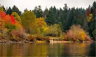 The lake maintains a small wintering population of Marbled Murrelets which also nest in the area, the only freshwater alcids on Earth.