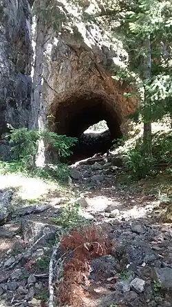 The McFee Tunnel is a railroad tunnel along the Spruce Railroad Trail which was blasted during World War I.[2] Prior to its renovation, the tunnel was only accessible via off-trail access points, which were difficult to reach and largely unsafe. The tunnel itself was pitch-black and contained materials from when the railroad was being built, such as old railroad ties.