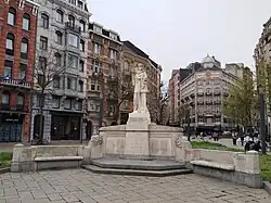 From the outset, the square was embellished with a triangular parterre on the boulevard's side, which in 1924 welcomed the Monument to the Showmen who died for the Fatherland. In 2005–06, the space was redesigned as a pedestrian area, with the exception of the western end, where a carriageway connects the Rue Lambert Crickx and the Rue de l'Autonomie. The narrow part of the square now houses a fountain.[1]