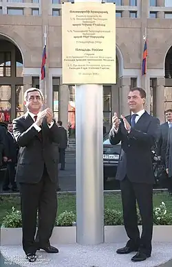 - ^ a b "ARMENIAN AND RUSSIAN PRESIDENTS PARTICIPATE IN OPENING OF RUSSIAN SQUARE IN YEREVAN". armenpress.am. Retrieved 2017-09-10.