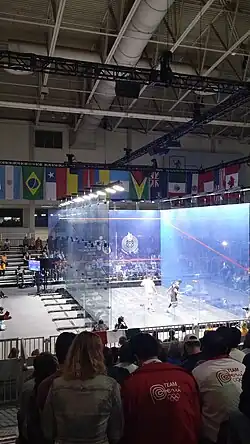 Squash competitions at the 2015 Pan American Games in Toronto was held from July 11 to 17.[1] The venue for the competitions was Direct Energy Centre (Exhibition Centre), due to naming rights the venue was known as the latter for the duration of the games.[2] The venue also staged the racquetball. A total of six events were contested (three each for men and women).[2]