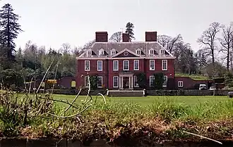 The land changed hands many times; in the 1680s, the previous house was torn down and the present house built by Sir Nicholas Crispe.[5] The house is set on a terrace and has a two-storey central block of seven bays under a steep, hipped slate roof with pedimented gables and dormers. It is a compact, oblong house, constructed of mellow orange brick. The original building was built flanked by two small wings forming a forecourt, but these were demolished and replaced in the 19th century. The replacement wings were themselves torn down after the Second World War and only the main block now remains.[2]