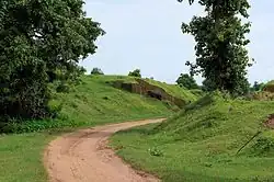 Sri Ksetra is a large city site with ruins of many structures, palaces and stūpas. The most prominent feature of the city is the circular plan, marked by a semi-circle of ramparts on the north, south and western sides. Outside the ramparts there was a moat, marked by a succession of tanks in the dry season. At several points in the ramparts, there are prominent gates, and around these gates are shrines and important remains.
