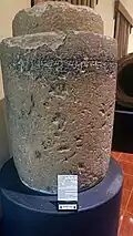 The Payahtuang complex, numbered HMA.31 according to the Department of Archaeology, is located in the centre of Sri Ksetra near the site museum (at 18°48'25"N 95°17'33"E). The complex comprises several structures: (a) the Payahtaung temple proper, a square building of brick similar in style to some of the buildings in Bagan and dating to the circa tenth century, (b) a modern temple to the east, (c) a ruined brick stūpa, (d) the foundations of a small ruined structure and (e) an octagonal brick building that contained a massive stone urn inscribed in the Pyu language giving what appears to be a memorial record of the Pyu kings.[28] The urn, discovered in March, 1993, is now in the National Museum of Myanmar (Yangon).