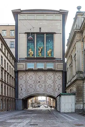 Stærekassen (lit. 'The Starling Nest Box'), also known as Ny Scene (English: New Stage) is a theatre building annexed to the Royal Danish Theatre on Kongens Nytorv in Copenhagen, Denmark. It opened in 1931 to serve a dual purpose as an additional stage for the Royal Theatre and the first home of the new Danish Broadcasting Corporation. The colloquial name, which has now obtained official status, refers to the design of the stage tower in the shape of a box suspended above the street, and in the initial design proposals with a large round window high up as the dominating ornamental feature of the facade.