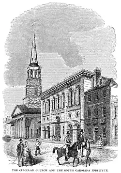 St. Andrew's Hall was a public building in Charleston, South Carolina, on Broad Street. The hall served as headquarters for the St. Andrew's Society of Charleston, South Carolina. It was also an important part of the social life of upper-class Charlestonians. It was used for balls, banquets, concerts, and meetings of organizations like the South Carolina Jockey Club and the St. Cecilia Society. The hall could also be used for lodging, and both President James Monroe and General Marquis de Lafayette stayed there.
