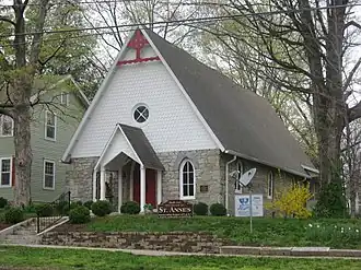 St. Anne's Episcopal Church is a historic Episcopal church located at 507 S. Main St. in Anna, Illinois. The Late Victorian Gothic church was constructed in 1886. The church was constructed with limestone quarried by the local Anna Stone Company. The church's design features a steep roof and lancet windows, both characteristic Gothic Revival elements. The wooden trim and shingles at the front of the church are inspired by the Queen Anne style. A bell tower, which was removed in 1914, originally topped the church.[2]