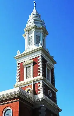 On June 15, 1976, St. Augustine's Church was listed on the National Register of Historic Places.[1] By 1988 the congregation of St. Augustine had shrunk to fewer than a dozen. The 1990s saw the congregation grow with Filipino Catholics from Philadelphia and the city's suburbs. In December 1992 an exact replica of Santo Niño de Cebú was dedicated, and Filipinos have held a special mass and festivals for Santo Niño.[3][12] Also in December 1992, a storm severely damaged the church's steeple. Debris from the steeple fell onto the Benjamin Franklin Bridge, which had to be closed for three days. The steeple had to be disassembled and removed.[13] From the damaged roof, the church and art inside suffered water damage.[3] A new steeple was erected on October 18, 1995.[14] The steeple restoration was documented by Brawer & Hauptman, Architects and was fabricated by Campbellsville Industries, "The Steeple People", located in Campbellsville, Kentucky.