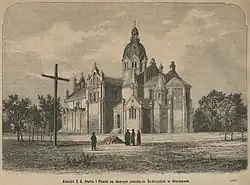 The origins of the church date back to 1781, when a small chapel was erected at the Świętokrzyski Cemetery. In 1866 the cemetery chapel was turned into the parish church. The surroundings of the small church rapidly developed in the second half of the 19th century. The church, though located in the central part of Warsaw, had capacity of only 200 people. A new building was greatly needed so in 1880 a new building was built and the new church was ceremonially consecrated by Archbishop Wincenty Popiel in June 1883.[1] The new three-nave building could hold 3,000 people.