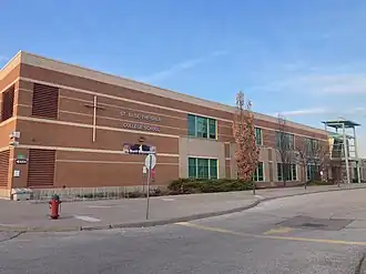![]() St. Basil-the-Great College School in March 2024. It was built in the former Southam newspaper plant in 1999. | |