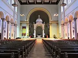 The interior of the church was renovated after the liturgical reforms of the Second Vatican Council. The baldachin was moved forward about 25 feet (8 m) and the former high altar was dismantled and a new altar was created. Two of Evansville's bishops were ordained and installed in St. Benedict's before it became a cathedral; Francis R. Shea in 1970 and Gerald A. Gettelfinger on April 11, 1989.[4]
