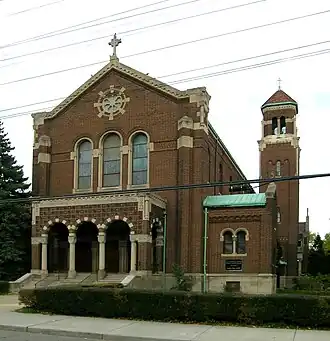The St. Catherine of Siena Parish complex consists of four buildings: the parish school (1913), convent (1926), rectory (1926), and the church itself (1929).[2] All buildings are basically Romanesque in style, with some Byzantine elements.[2]
