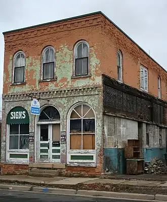 By 1891, Frederick Kuebler's bakery had become the headquarters of the St. Charles Times. On April 26 of that year a major fire destroyed three blocks of downtown St. Charles. The former bakery was one of only two commercial buildings to survive the devastation. Rather than rebuild in what by then had become the north end of town, a new downtown arose three blocks to the south. This location was more central for merged St. Charles and adjacent to the Winona and Southwestern Railway facilities that had been laid down the year before.[3] The Whitewater Avenue Commercial Historic District preserves a row of seven buildings from this new construction.[5] Meanwhile, the commercial beginnings of St. Charles were all but erased. The St. Charles City Bakery building is the only surviving remnant of the original downtown.[3]