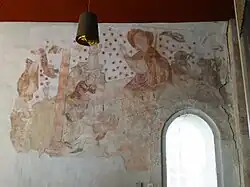 In several places in the interior of the church, there are large remnants of colored murals on the plaster. These paintings date back to the turn of the 14th and 15th centuries.[27] All the murals were restored during a renovation project in 1965-1967.[57]