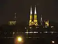 There has been a Catholic church presence in or around the site of the future church since 1583. However, the impetus for creating a lasting church did not arrive until the late 19th century, when Poland was not an independent country.[1] The map of Europe was redrawn during the 1815 Congress of Vienna and the resulting territorial maneuvers placed the French Duchy of Warsaw under the control of the Russian Empire, transforming it into the Congress Poland.[2] Among other intrusions, over twenty Russian Orthodox churches were built in Congress Poland.[3] To protest against the perceived imposition of a foreign church, and in direct reaction to the monumental Orthodox Church of Mary Magdalene built down the street, St Florian’s was built with two commanding 75-meter (246 ft) towers between 1897–1904.[1][4]
