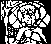The monks at Pershore Abbey, who commissioned Osbert to write Eadburh's hagiography, named her as one of their patron saints and acquired her relics in the late tenth century.[3] The abbey's seal, created in the 1300s, Eadburh is depicted "in three-quarter length, facing forward, wearing a veil, holding a chalice in her right hand and an open book, likely the gospels, in her left".[3] Bugyis states that Eadburh's position on the seal is remarkable because at monasteries in England during the time, the position, along with a sign of their office (a crosier or book) was usually held by the person who held a house's highest office. Bugyis insists that the seal conveys the Pershone Abbey monks' view of Eadburh as a representative of their identity and that they considered her as a figure of the abbot of their community.[3] Finally, Bugyis states that they "took pride in identifying, and being identified, with her image because they used it continuously to close correspondance and to authenticate documents until at least 1534".[19]