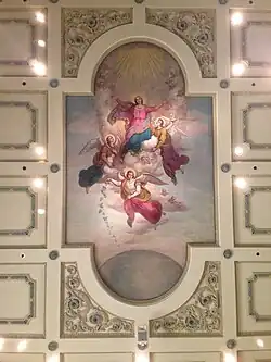 Major renovations were carried out in 1870, the transparent glass windows replaced with new stained glass. New pews to seat about six hundred people were added. A ceiling painting of the Assumption of Mary by Wilhelm Lamprecht was added. The following year, the newly renovated church was decorated for the public celebration of the twenty-fifth anniversary of Pius IX's election to the papacy; gaslight illuminations were installed for the occasion but could not be used because of adverse weather.[4]