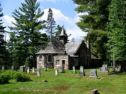 St. John's in the Wilderness Episcopal Church is an Episcopal church in Paul Smiths in the Adirondacks, New York State, United States. It was founded in 1876 by Dr. Edward Livingston Trudeau with the help of Paul Smith and many of the wealthy camp owners around Spitfire, Upper, and Lower Saint Regis Lakes. The original log building burned in 1928, and was replaced by the present structure, designed by William G. Distin, in 1930.[1] The non-denominational cemetery surrounding the church contains the graves of Dr. Trudeau,[2] Paul Smith,[3] Charles Minot Dole[4](founder of the National Ski Patrol), Clifford R. Pettis (the father of reforestation)[5] and several other notable residents of the area.