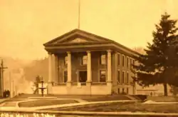 St. Johns was officially recognized as a municipality by the Oregon State Legislature on February 19, 1903.[8] Early citizens tasked with incorporation of their small town formed a new school district and petitioned the county court for a vote of approval.[9] In 1904, the St. Johns Civic Improvement League was established to help the infant city catch up with the more established sites along the Willamette River.[10] For almost two years after the town was established the streets remained unnamed and houses went unnumbered, making postal service impossible.[11]