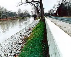 The St. Joseph River forms in northern Williams County, Ohio, at the confluence of the East and West branches at 41°38′54″N 84°33′55″W / 41.64833°N 84.56528°W.[3][4][5] Both branches rise in southern Hillsdale County, Michigan. The headwaters of the East Branch are within 3 miles (4.8 km) of those of the St. Joseph River of Lake Michigan. Both branches initially flow southeast, then turn to the southwest to flow across the northwestern corner of Ohio past Montpelier. The St. Joseph enters De Kalb County in northeastern Indiana, flowing southwest past Saint Joe and into the city of Fort Wayne, where it meets the St. Marys River to form the Maumee River at 41°04′58″N 85°07′56″W / 41.08278°N 85.13222°W.[6] The US Army Corps of Engineers built a flood control project in Fort Wayne that includes a floodwall and upper roadway along the St. Joseph River. (See photo)