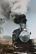 In 1971, #5 was acquired by the newly-established Crab Orchard and Egyptian Railway and moved to their location in Marion, Illinois.[1] It was subsequently used for tourist trips on former Illinois Central Railroad trackage.[6] During the winter of 1973 and 1974, crews converted #5 from a tank engine to a tender engine, removing the saddle tank and converting Illinois Central auxiliary water tender X5512 (formerly numbered A-512) to a conventional tender with a coal bunker.[7][2] On October 18, 1977, #5 pulled the CO&E's first revenue freight train and with the subsequent profit from revenue freight runs and declining success of tourist trips, the CO&E discontinued all passenger trains in 1979.[1] #5 was withdrawn the same year.[7]