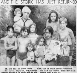 Estes and his wife had 12 children (six boys and six girls) by 1938, raising them all on a raw food diet from birth. It was decided that Estes would name the boys, which he did as "St. Louis Estes" with the suffix "II" thru "VII". Mrs. Estes named all the girls. The family employed a man by the name of "Prince de Vigni", who claimed to be the last surviving member of the royal family of Silesia, to tutor their children four hours each day.[9]