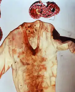 ![]() The shirt worn by St. Louis Jane Doe at the time of her murder, along with the cord that bound her. | |