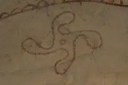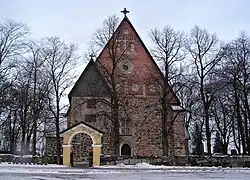 St. Mary's Church (Finnish: Maarian kirkko, Swedish: S:t Marie kyrka) is a medieval stone church located in Maaria, in Turku, Finland. There are no records as to when the present church was built, but the work was probably started in the mid or late 15th century. According to Markus Hiekkanen, the church was probably built in the 1440s, on the basis of the style of the closets; the gables were constructed about 50 years later. [1] There are medieval limestone paintings on the walls, which are not common to other places in Finland. The most valuable artefacts are the wooden altar cabinet and a large altarpiece depicting Christ on the cross. [2]