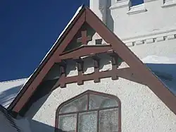 Beams, trim, and bargeboard over the southwest window