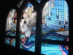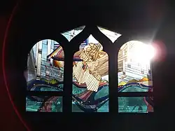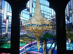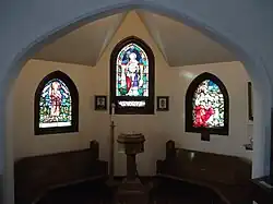 The church presented different types of the architecture typical of Gothic revival: the double pointed arch on the windows along the nave and sanctuary and baptistery (most of them with colourful stained glass and most of them dating from the first half of the 20th century) featuring figures and scenes from the New Testament[11] Two of the stained glass windows (dating from 1992) were a fine blend of contemporary art and Christian imagery (the New Heaven window and the New Earth window. One exception to the New Testament thematic is "The Galahad window" based on Alfred, Lord Tennyson's version of the Arthurian legend and the quest for the Holy Grail (Le Morte d'Arthur) - in the Gothic style.