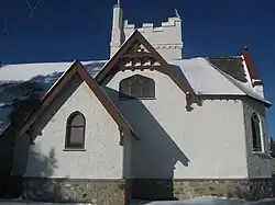 Built in 1928, the church was primarily Decorated Gothic with Perpendicular Gothic details, while its tower finished in 1932 followed the Norman Gothic style. The church was one of the few remaining examples of mid-eighteenth century ecclesiastical architecture in Western Canada.[9] As a building significant in the human history of Jasper, as well as of the utmost importance for the architectural history of Canada, it was declared a provincial historic resource in 1985.
