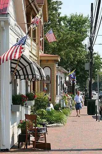 Saint Michaels is a small nautical-themed town on Maryland's Eastern Shore.[1] It is situated along the Miles River, which leads to Chesapeake Bay.[Note 1] Boaters can get to the town's St. Michaels Harbor from nearby rivers or the Chesapeake Bay.[1] Traveling by automobile from major cities such as Annapolis or Baltimore, the most direct route to the Eastern Shore involves crossing the bay using the Chesapeake Bay Bridge.[3] Saint Michaels is part of Talbot County, and accessible by automobile via Maryland Route 33. In town, the road is known as Talbot Street and is the only road that passes through town. The town's Historic District is lined with shops and restaurants usually housed in well-preserved 19th century architecture.[4] The Saint Michaels Historic District is located in the center of town, and was added to the National Register on September 11, 1986.[5]