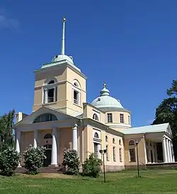The St. Nicholas Church (Finnish: Pyhän Nikolaoksen kirkko; Swedish: S:t Nikolaus kyrka) is the main church of the Kotka Orthodox Church in Kotka, Finland, surrounded by the Isopuisto park The church was built between 1799 and 1801 according to the drawings of architect Jakov Perrin.[2] The church dates back to the time of the active years of the sea fortress of Ruotsinsalmi,[1] when the Russians built the Ruotsinsalmi–Kyminlinna double fortress in the Kymi parish and a fortress town was created on Kotkansaari. The church is the oldest building in present-day Kotka,[2] and it is a notable representative of neoclassicism in Finland.[1]