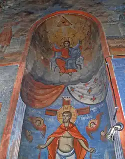 The fresco painting is the work of Avram Dičov, the eldest son of Dičo Zograf from the village of Tresonče, and it was worked on at the same time to be finished in 1879. The church with imposing dimensions, built with imagination and richly painted, is one of the most beautiful Macedonian revival monuments in North Macedonia.[2]
