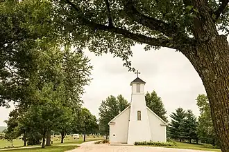 There was a rivalry between those who settled on the north side of the North River and those who settled on the south side as to who would get the church.[4] The parish was founded in 1852 with the church on the north side. It was the first parish founded in what would become the Diocese of Des Moines.[5] A log structure served as the first church, which was begun by Mullen but finished by Rev. John Kreckel. Itinerant priests served the parish in its early years. The Rev. Francis McCormick was appointed the first resident pastor in 1857, but he did not stay long. The Rev. John Brazill of St. Ambrose Church in Des Moines had the present frame church built to replace the original log structure in 1868. A monument in the parish cemetery commemorates the old church on the site where it stood.[6] St. Patrick's became a parish in the Davenport diocese when it was established in 1881. The parish was divided in 1884 at the North River with the parishioners who lived to the south forming a new parish at Churchville. Other divisions happened soon after that when parishes were begun at St. Mary's and in Winterset. The parish was transferred to the Des Moines diocese when it was created in 1911.
