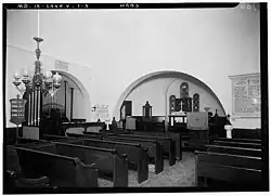 After the American Revolutionary War, St. Paul's Parish entered a period of stagnation and decline. Half a century later in 1840, only thirteen families were recorded on the parish rolls. However, under the effective leadership of several rectors in the mid-19th century, the parish was revived and improvements were made to the church. In 1841, a vestry was added and the interior refitted with new pews. The sanctuary was also aligned to support worship focused on the sacrament in accordance with the growing Oxford Movement. Upon the completion of these projects, St. Paul's Church was consecrated on November 26, 1843 by the Right Reverend William Rollinson Whittingham, Bishop of the Diocese of Maryland. During the American Civil War, a triptych stained-glass window was installed in the apse above the altar employing the colors and symbols that were later incorporated into the Maryland State Flag as a symbol of unity among the divided sympathies of the parish.[8]