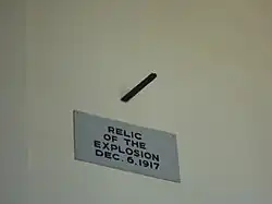 St. Paul's Church played a significant role in the Halifax Explosion. Doctors used the church as an emergency hospital, using the two vestries to tend to the wounded, while the bodies of the dead were stacked on top of each other around the walls of the nave.[65][66] Only one stained glass window was broken in the church; however, most of the other windows were smashed, and there were wide cracks in the roof. It was the only church in the city considered safe enough to conduct a service the following day. All the congregations used the church to conduct funerals.