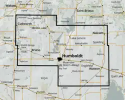 • Humboldt 1905: St. Augustine Church was founded in 1905.[17] St. Elizabeth Convent Cemetery in Humboldt. The first burial was in 1916 with 62 burials by 1996.[18] The Franciscan Sisters of St. Elizabeth arrived from Austria in 1911 and founded a hospital in Humboldt.