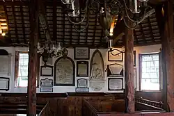 The church's interior is simple, with exposed cedar beams (prior to the blight which virtually annihilated Bermuda's cedars in the 1940s and '50s, the wood was considered inexpensive and those who could afford to favoured more expensive, imported woods. Today, the endemic wood is scarce, priceless, and proudly displayed in those homes which have it). The font of the church is 500 years old, older than the settlement of Bermuda. The walls of the church have commemorative plaques on the inside, and there are gravestones set in the outsides, those of the notables who were considered worthy enough to be buried under the church floor, such as the printer of Bermuda's first newspaper (The Bermuda Gazette), Joseph Stockdale, and Governor George James Bruere, who died in office in 1780.